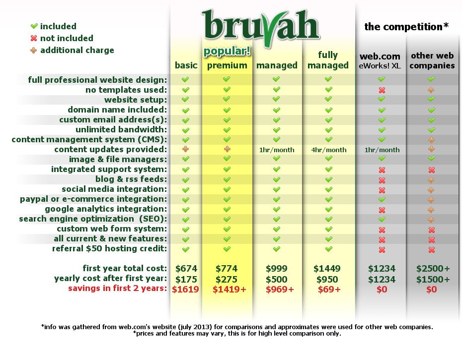 Your price breakdown Website Package Price + Hosting Price for the first year. Then the cost of your hosting package for every year after that. You will save hundreds and possibly thousands over other web company prices. Start saving today!